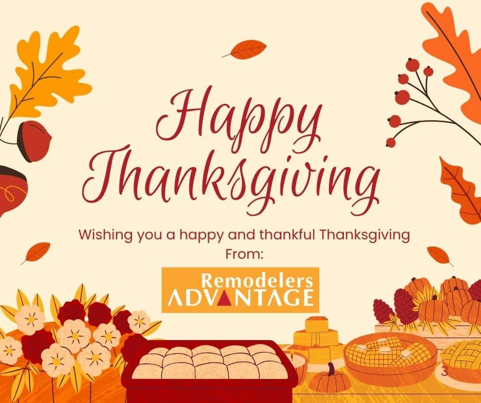 Warmest wishes for a safe, joyful, and restorative Thanksgiving from everyone at Remodelers Advantage.